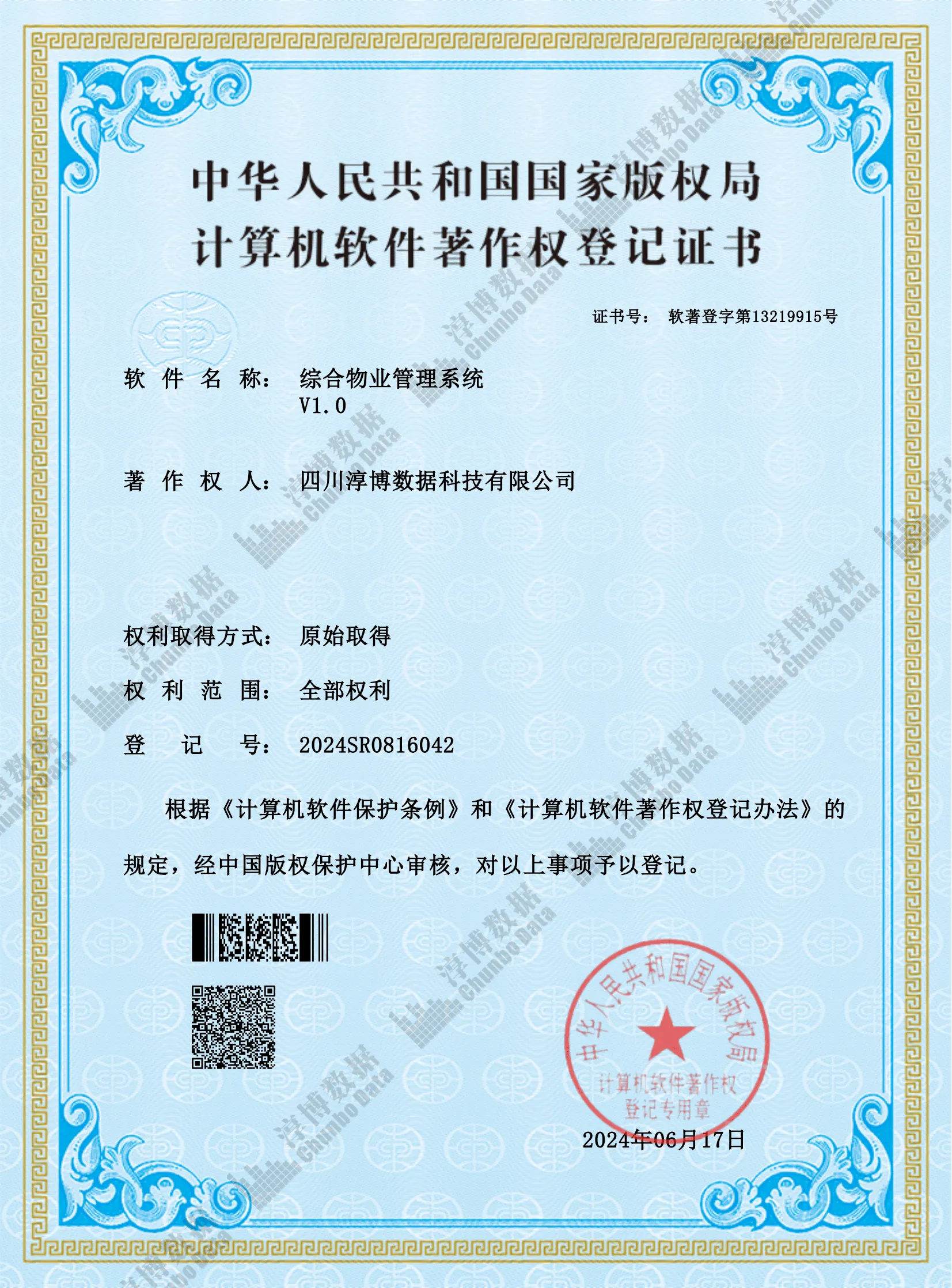 1.获得商标注册证-CHUNBODATA:9